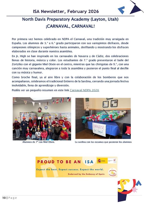 Here you will find our special ISA Newsletter for February, which highlights our school’s first Carnival celebration. Inside, you’ll find a short recap of the event, some photos, and recognition of the wonderful work done by our students and teachers.