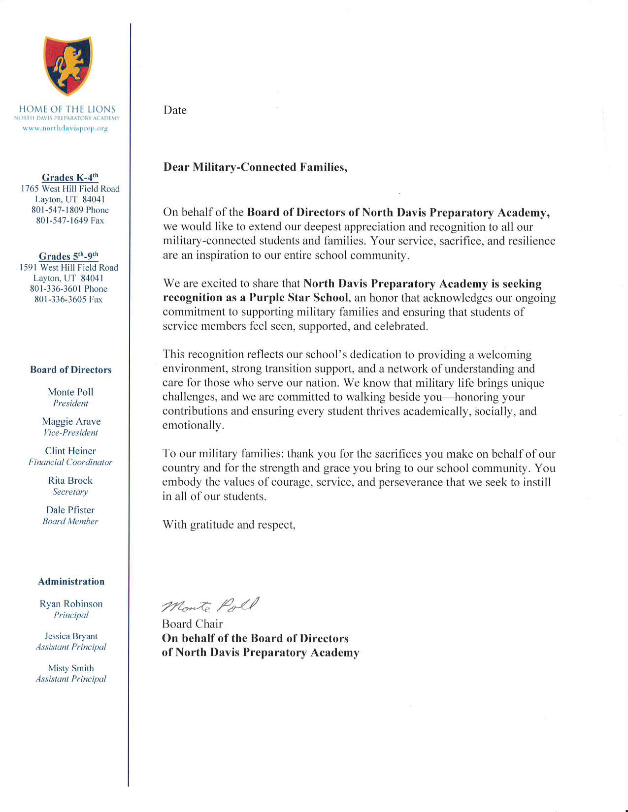 Layton (listed from closest to the school to farthest)